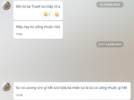 Đây là các phản hồi cho những ca trị liệu trực tiếp: