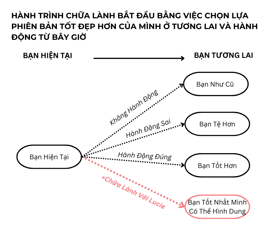 Chính là chúng ta lựa chọn phiên bản “tốt đẹp hơn” ở tương lai và có hành động tương ứng ở hiện tại, bắt đầu từ đây các bạn đang đi trên hành trình chữa lành của mình.