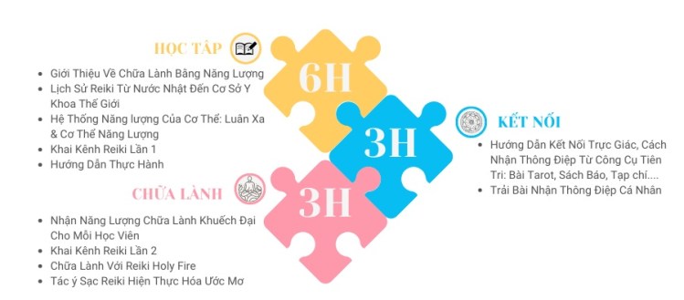 Reiki Retreat của Lucie với hơn 12 giờ đồng hành chặt chẽ đi qua 03 module như sau: