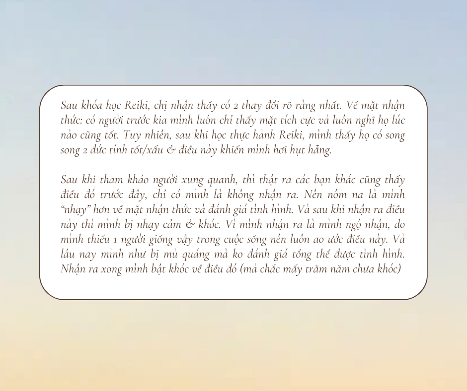 Mời bạn click vào ảnh bên dưới để xem những học viên tham gia Reiki Retreat chia sẻ về những chuyển hóa và sự chữa lành mà nó mang lại